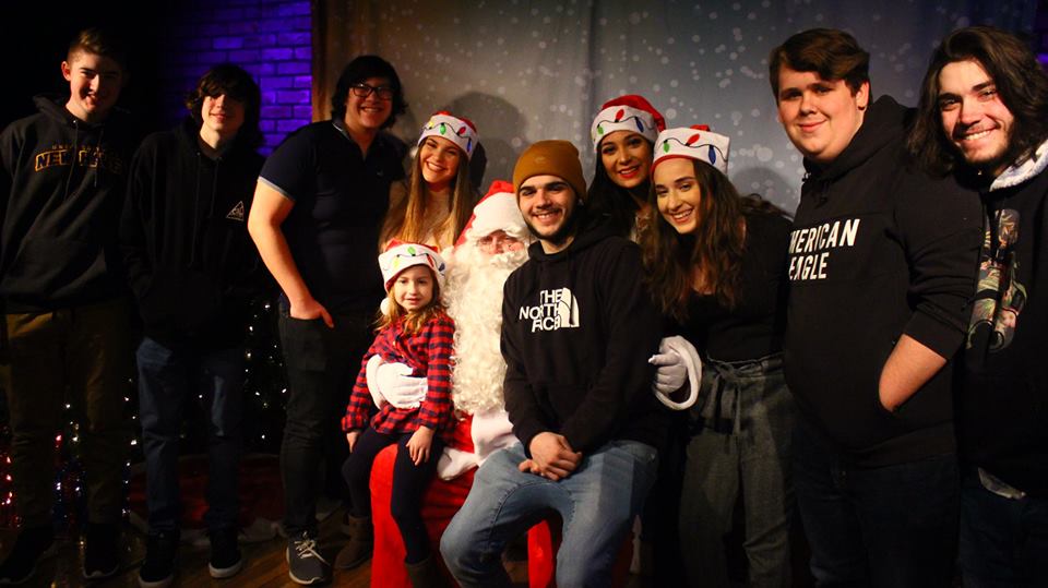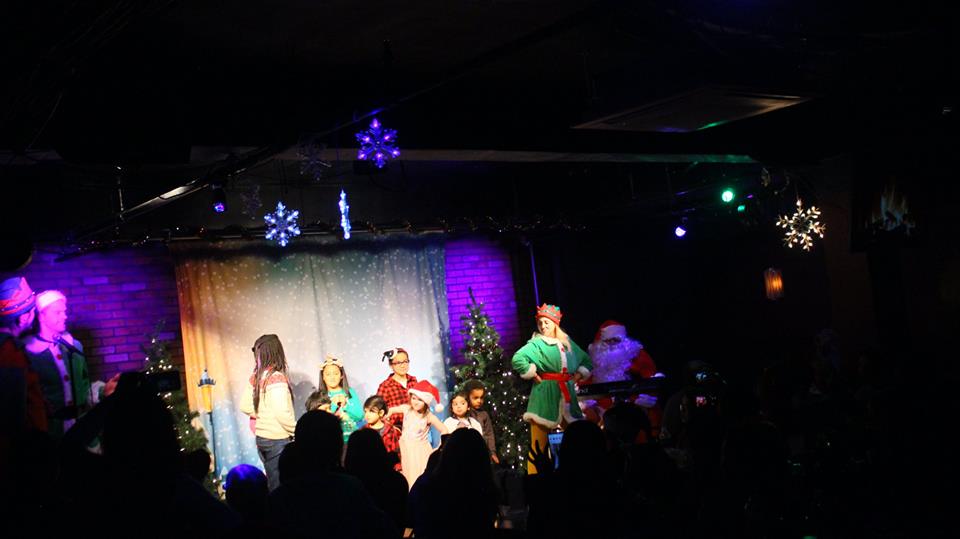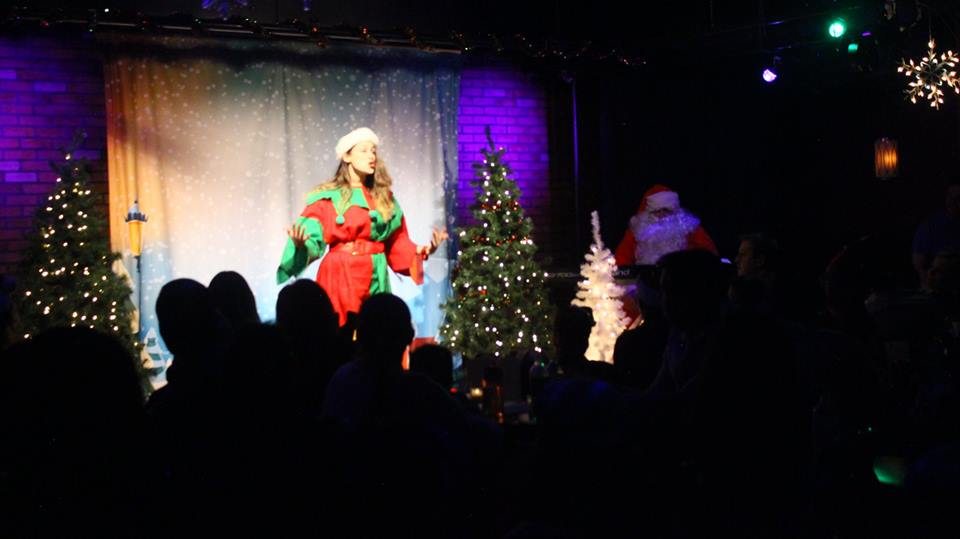 ELFPROV: Elf Ivana warms up the crowd. Santa takes a seat at the piano.