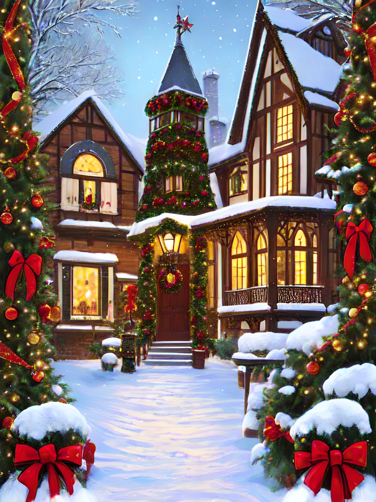 Scrooge led the procession inside, the air buzzing with excitement, now with dozens of villagers’ arms filled, carrying dozens of sweet and savory dishes, a giant roasted goose, breads, cakes, cookies, flowers, musical instruments and more. Fred’s guests watched in awe as the room soon erupted into a lively dance, with Scrooge at the center, twirling and spinning with infectious joy. It was a celebration like no other.