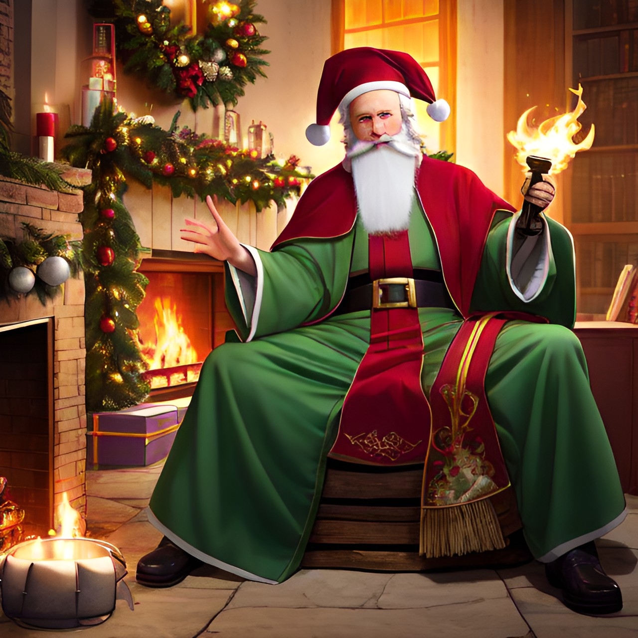 Instantly the cold empty hearth blazed with warmth and the light of a roaring fire as an awe-inspiring figure appeared before Scrooge.