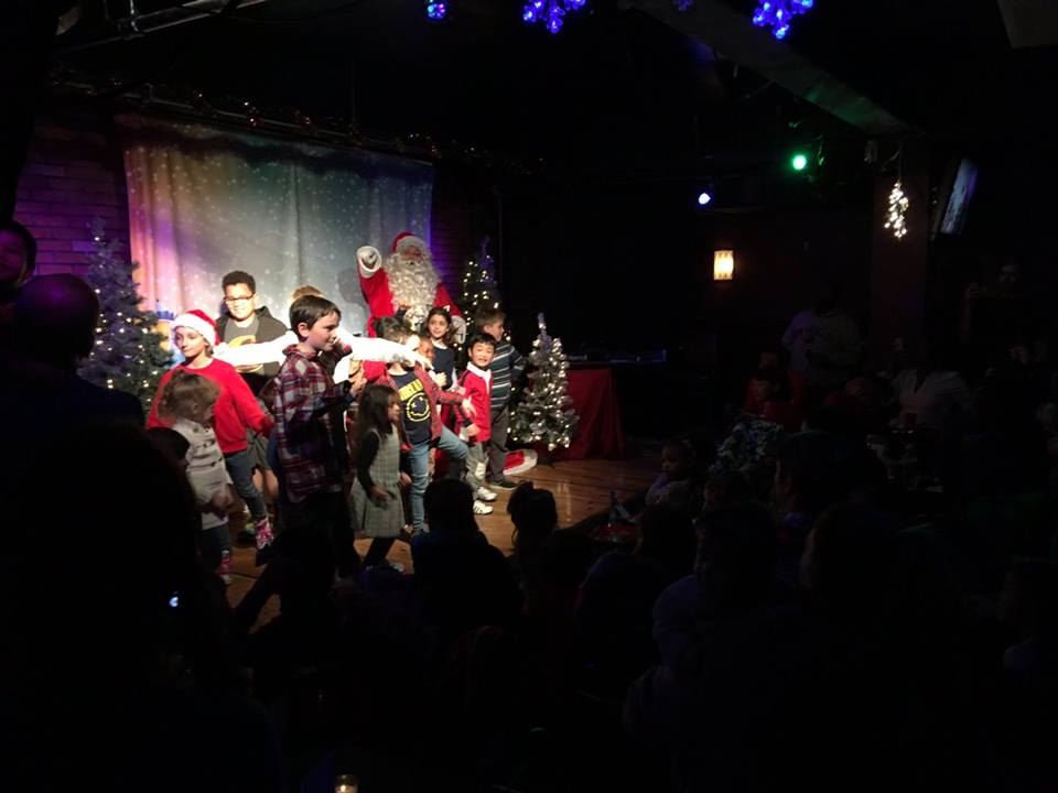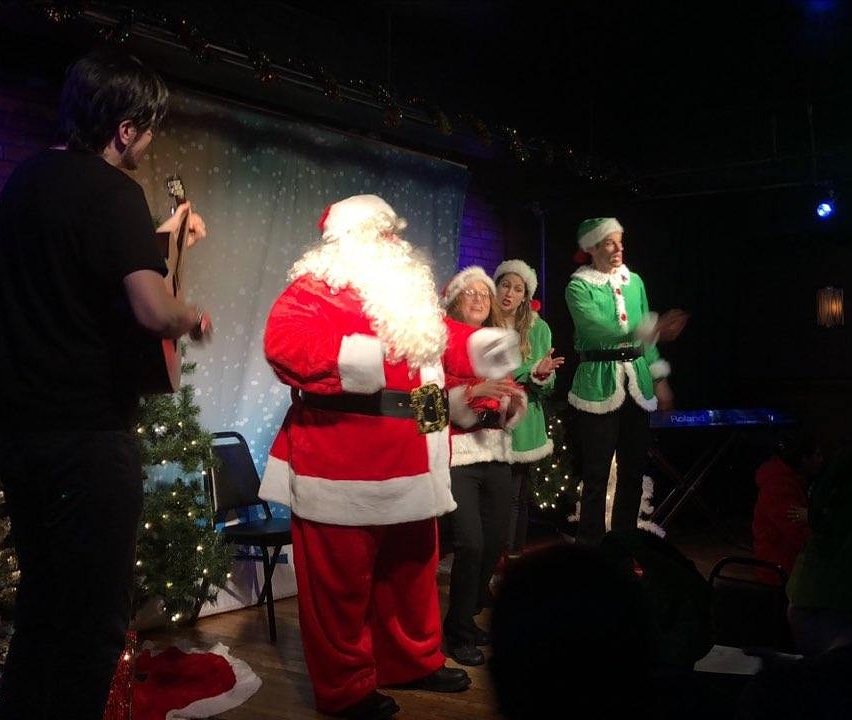 The elves present their hilarious interactive musical comedy show, ELFPROV, completely improvised based on your suggestions and participation. They’ve got original music – Marches about about favorite toys, Irish Jigs about Holiday mishaps or the Holiday Traffic Blues are just a few of the recent tunes. The rest of the show involves kids of all ages on stage more directly steering the comedy, making crazy sound effects or posing for holiday slides.
